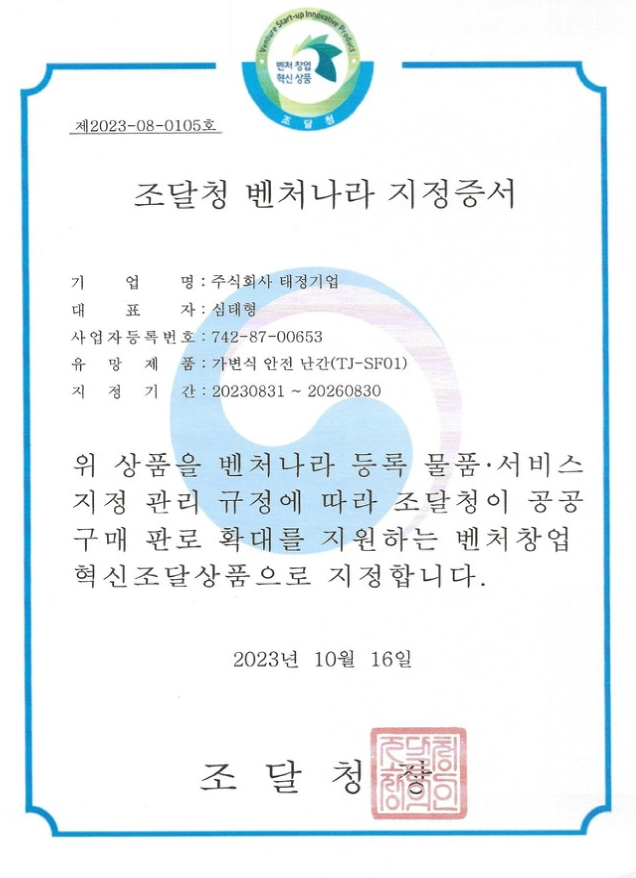 공연장 가변식 안전 난간 제작 전문 기업인 태정은