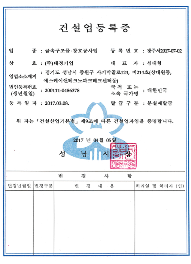 주식회사 태정 기업입니다.